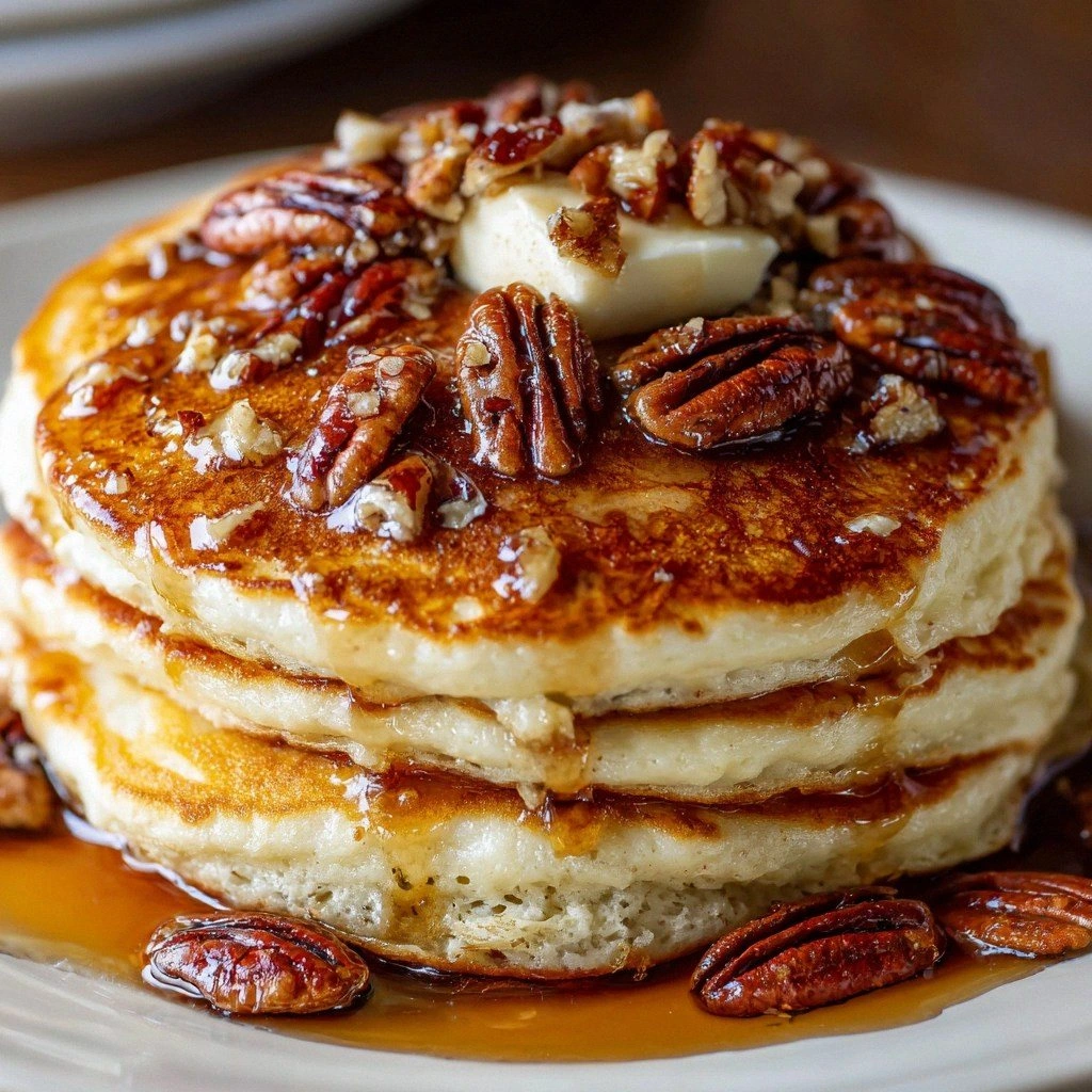 Imagine a plate that smells of toasted pecans and buttery vanilla, the first bite sending a warm, caramelized rush that settles in your palate like a hug. The batter, light as a cloud yet rich enough to linger, spreads into golden‑brown ribbons that crackle softly as they set. Every pancake is a small, fluffy canvas, each layer a soft, buttery puff that melts in your mouth. The texture feels like a velvety ribbon that folds into itself, leaving a satisfying, moist bite that feels like a secret handshake between breakfast and dessert.