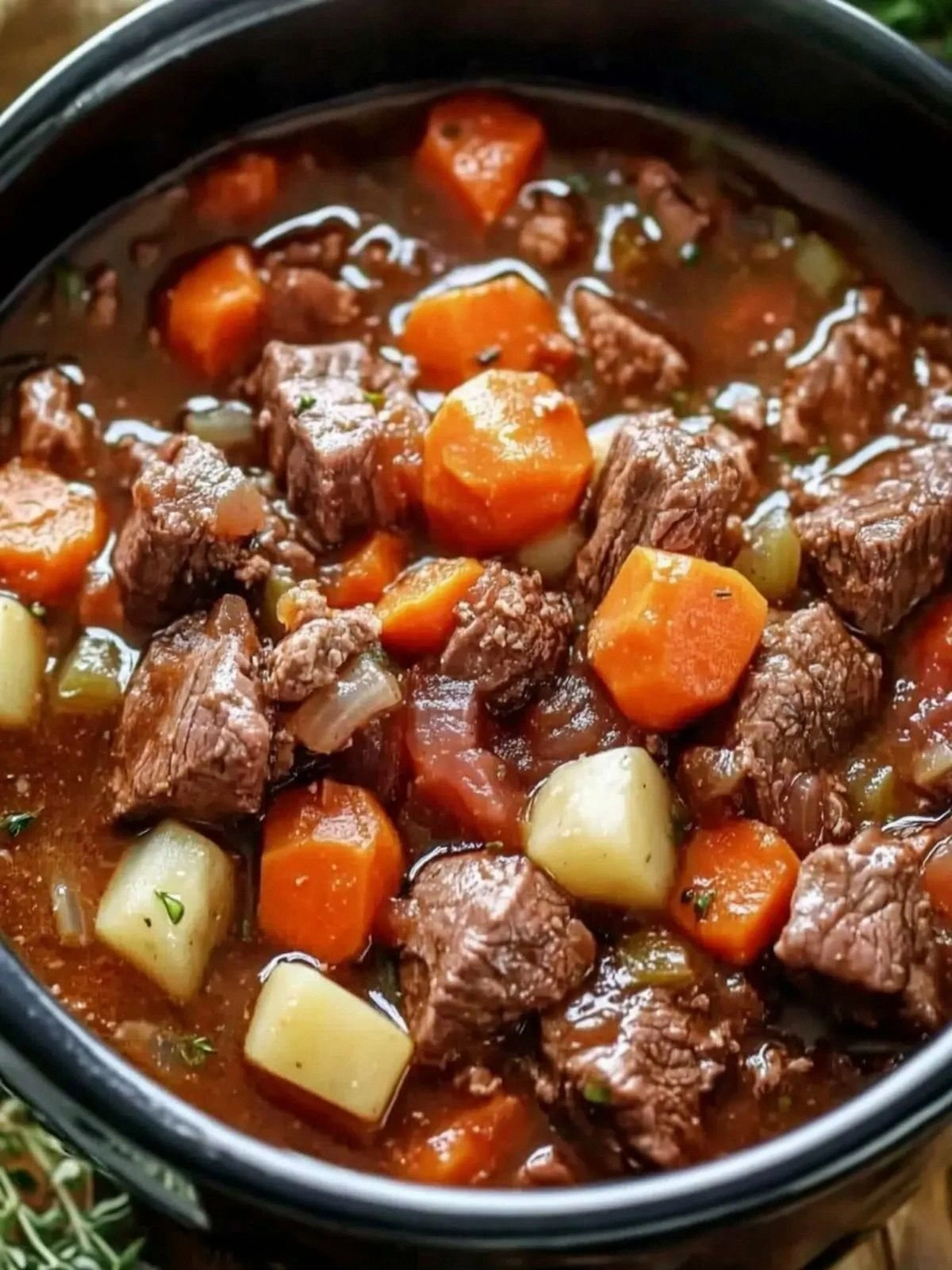 Picture this: a golden‑brown crust forming on the surface of the beef, the scent of caramelized onions drifting through the air, and the gentle hiss of simmering broth. You can almost hear the faint clink of a wooden spoon against the pot as the flavors marry. The first bite is a warm, savory hug, the potatoes tender like a cloud, the meat falling apart with a single forkful. The aroma alone makes your kitchen feel like a cozy cabin on a winter evening, and the texture is a perfect blend of silky gravy and hearty chunks.